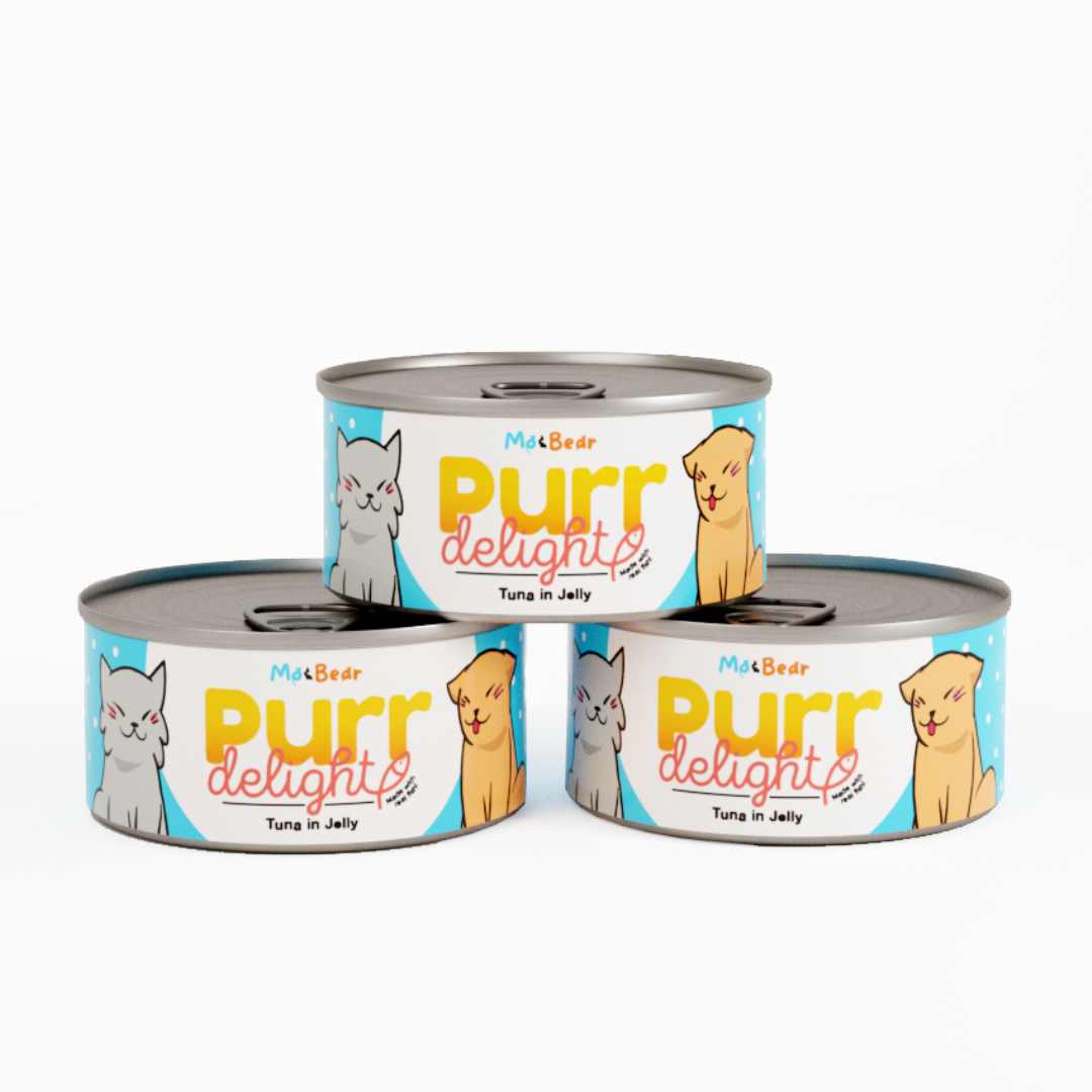 Our classic flavor is purr-fect for your cat's next meal! Purr Delight Tuna in Jelly cat food is made with real tuna flakes, ensuring your cats savor every healthy bite. Each can is fortified with Omega-3, which helps keep your cat's skin, coat, and joints in excellent condition.