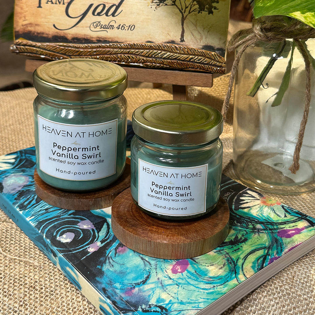 Description: Experience the delightful blend of cool peppermint and creamy vanilla with the Peppermint Vanilla Swirl candle. Hand-poured from natural soy wax, this candle combines the invigorating freshness of peppermint with the comforting sweetness of vanilla, creating a balanced fragrance that's perfect for any season.