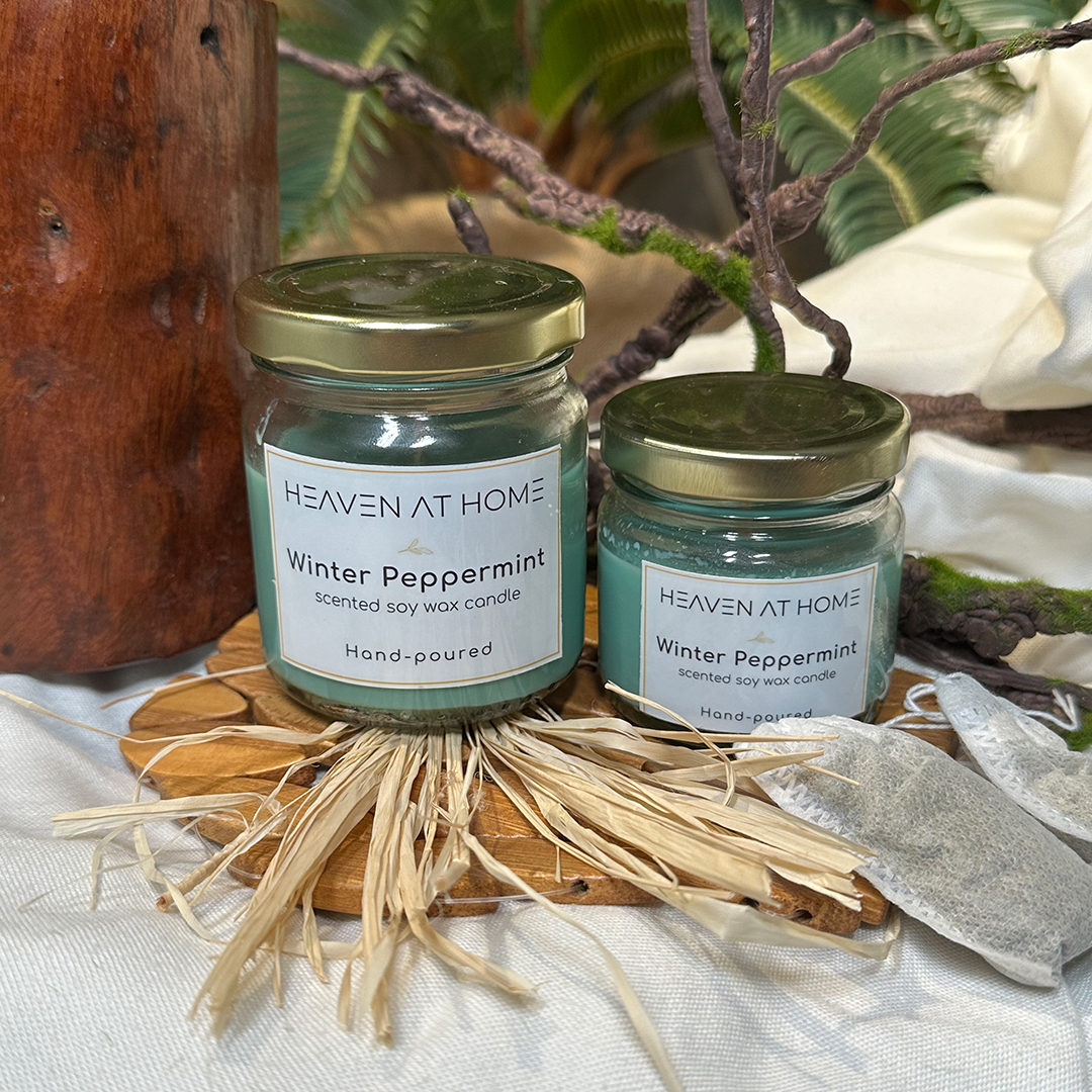 Description: Refresh your senses with the crisp, cool fragrance of Winter Peppermint. This hand-poured soy wax candle delivers a burst of invigorating peppermint, perfect for freshening up your home during the colder months. Its natural soy wax ensures a clean burn, providing hours of refreshing scent without the harsh chemicals.